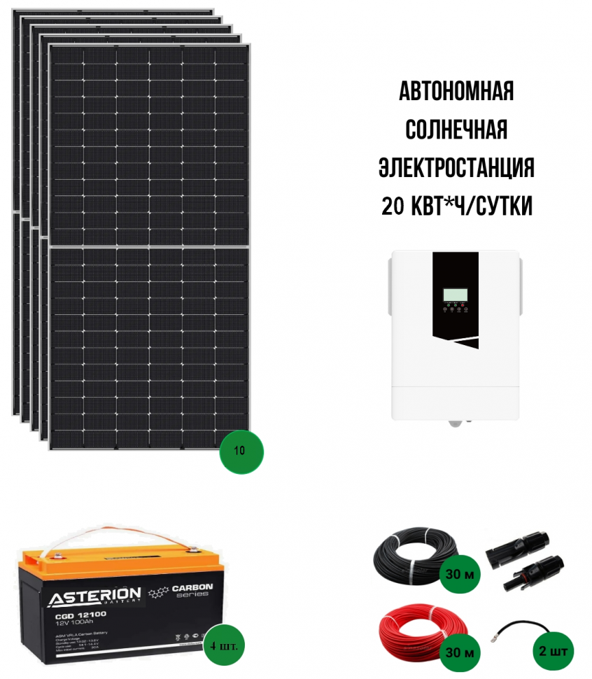 Автономная солнечная электростанция 20 кВт*ч/сутки*, для дома 150 м2